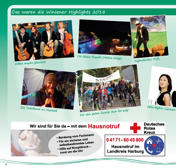 Das waren die Winsener Highlights 2018 Jugendkultur PUR Für den guten Zweck: Run for help Oper légère: Carmen Die Blaue Stunde (Melina Kluge) ABBA macht glücklich Die Tüdelband im Marstall 4